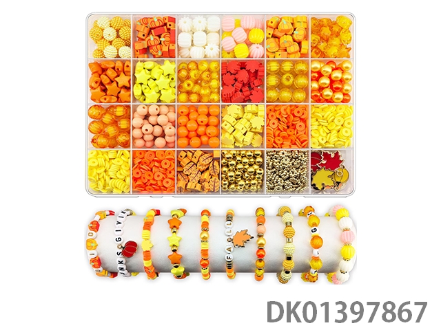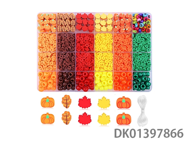 Soft pottery pieces, letter beads, barrel beads, and threads (24 grids)