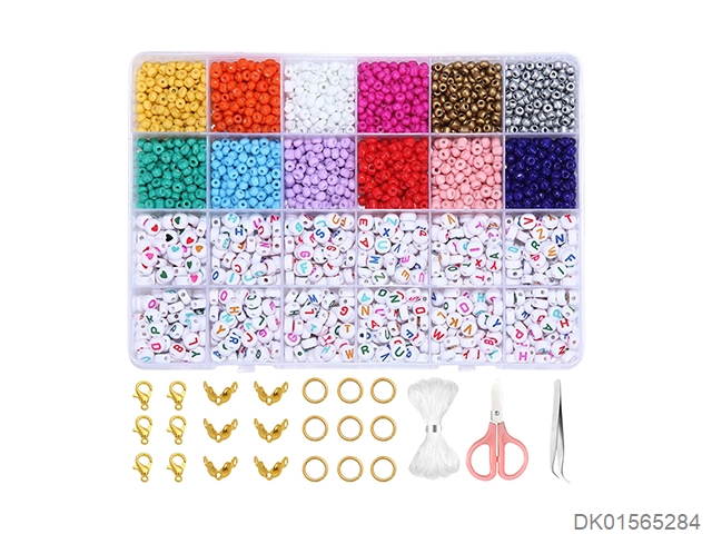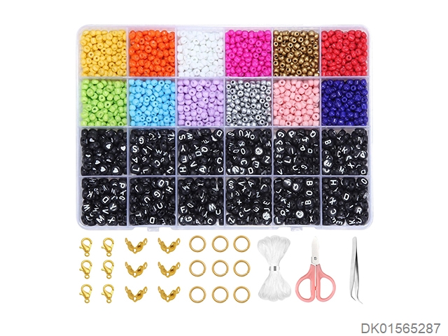 3Mm rice beads and letter beads with lobster clasp scissors line (24 grids)