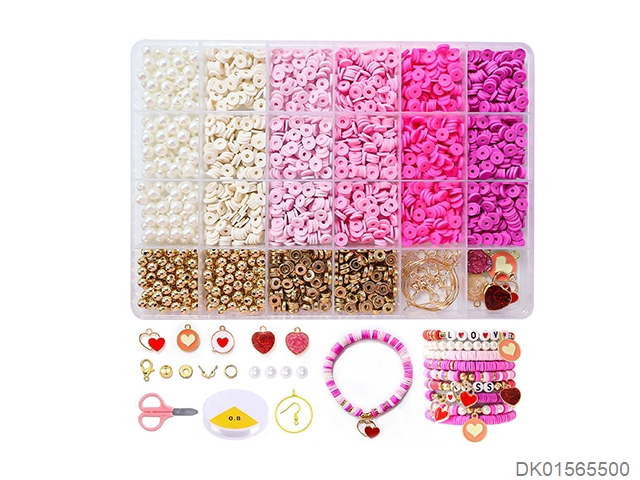Soft ceramic beads and pieces, colored beads and letter beads, and lines (24 grids)