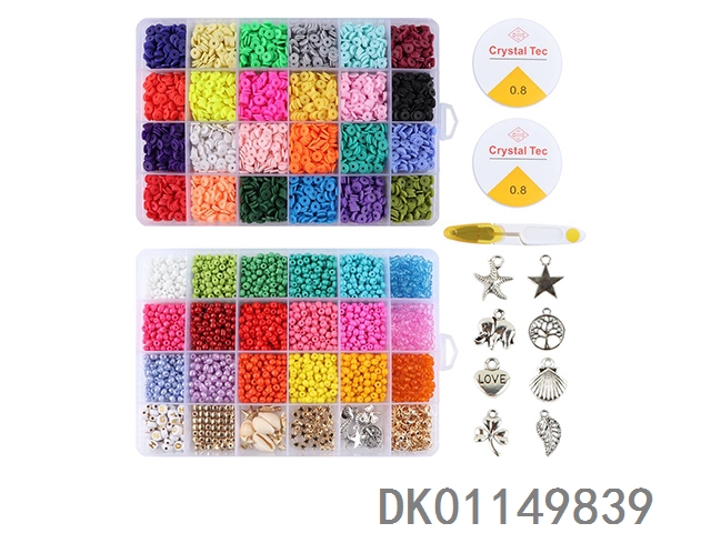 Soft clay and letter beads with scissors solid and transparent lines (24 grid)