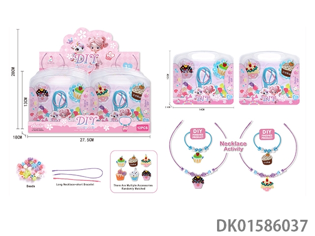 Girl’s jewelry toys - DIY handmade bead necklace/bracelet for ice cream, 12 pieces/box