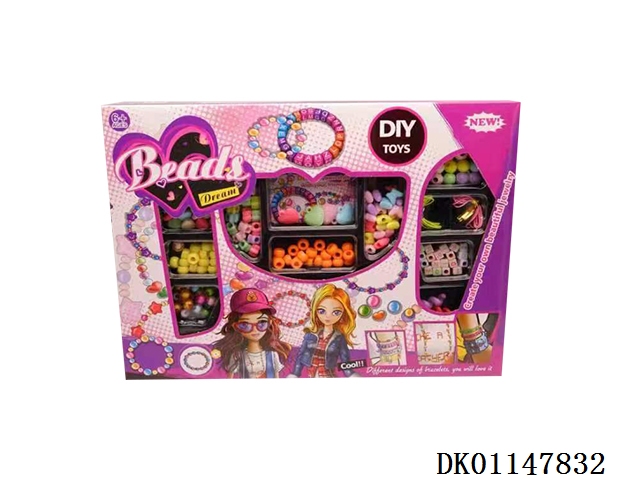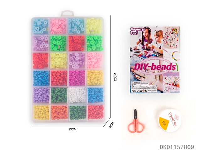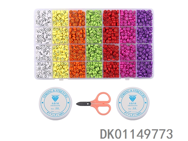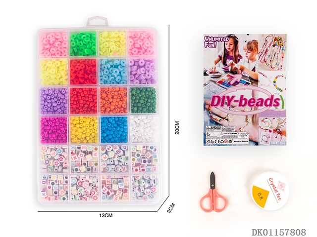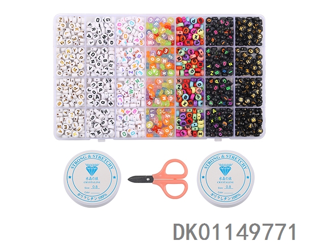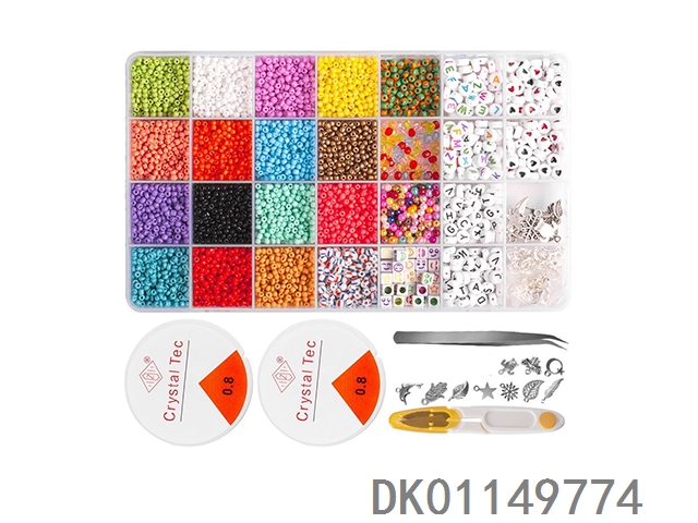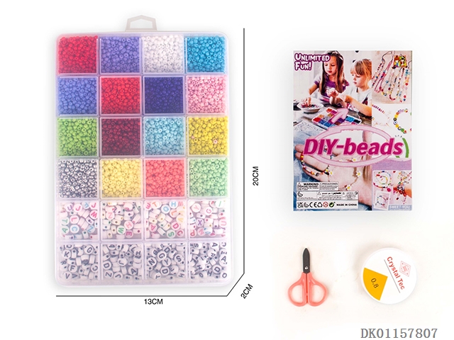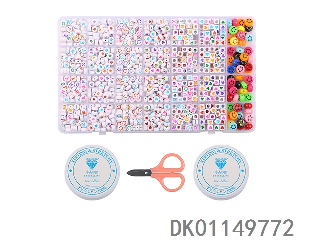 Rice beads and colorful beads, letter beads, pendants and scissors, lobster clasp lines (28 squares)