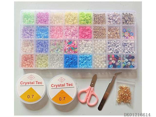 Rice beads, colored beads, barrel beads, soft clay beads, partition beads, and letter beads (32 cells)