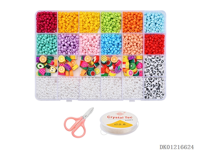 Rice beads and letter beads, as well as soft pottery and pearls and scissor threads (24 grids)