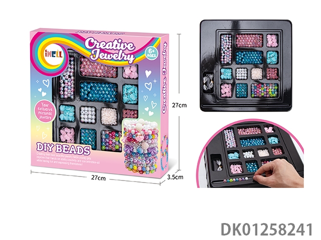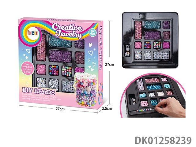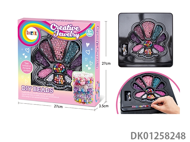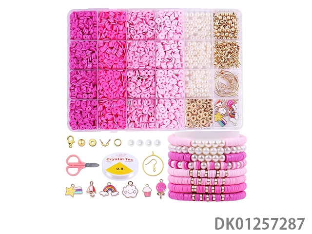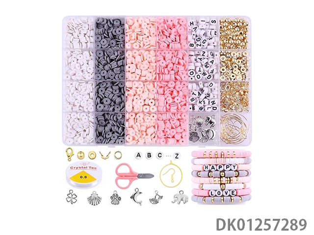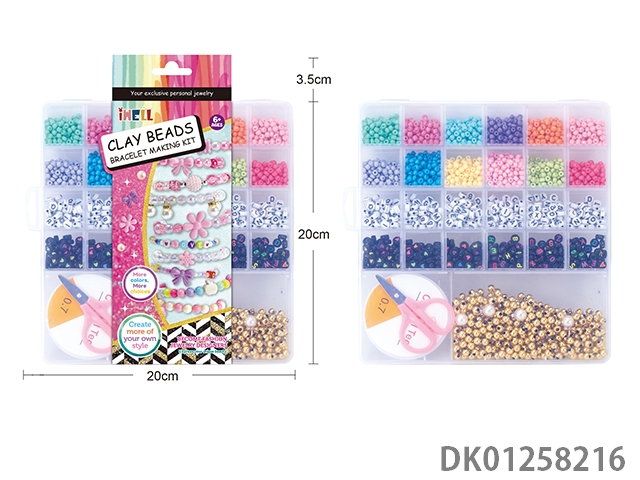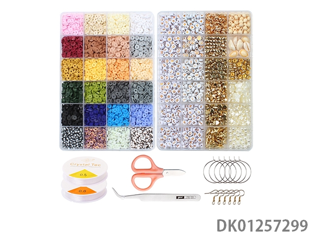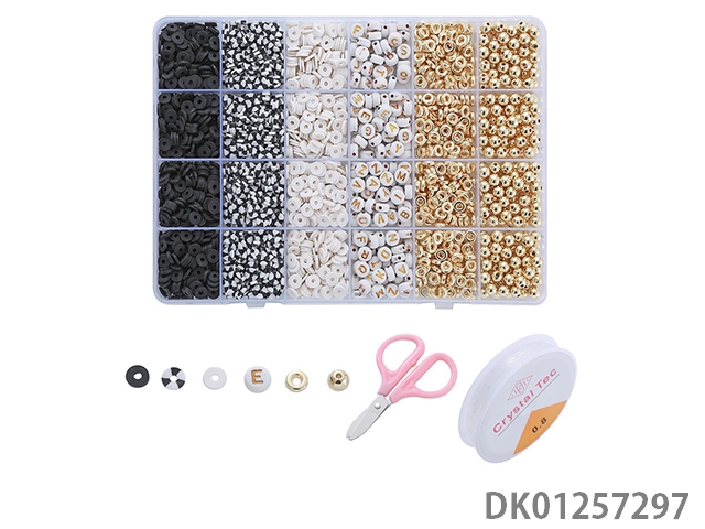 Soft pottery and letter beads, separated beads, pearls and ear hooks, lobster clasps, clasps, tweezers, scissors, and thread (48 grids)