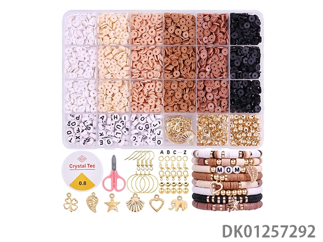Soft pottery, letter beads, and gold bead pendants with ear hooks, scissor lines, lobster clasps, and loop closures (24 compartments)