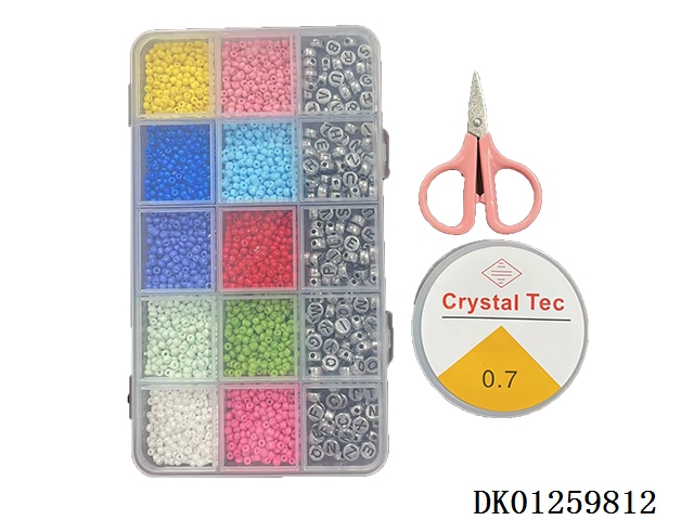New 15 grid regular beads, large ceramic pieces, and fine bead string box (with scissors and wire box)