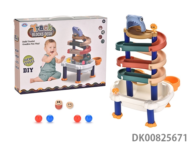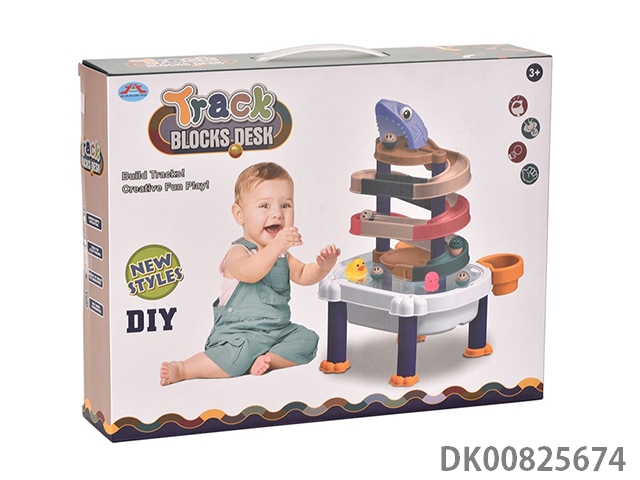 Versatile track building block table (with rubber padded sea animal doll)
