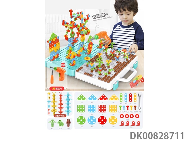 399 Puzzle assembled garden house building block suitcase - electric drill, without battery (2 * aa)