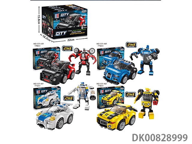 Yizhi city racing building block double force sports car series 4-in-1 deformation robot (115-130pcs) 4pcs/box
