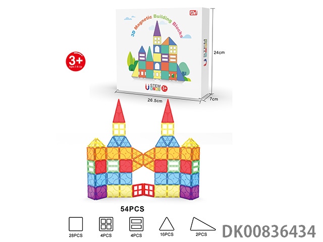 54 Pieces of 3d magnet color window building blocks