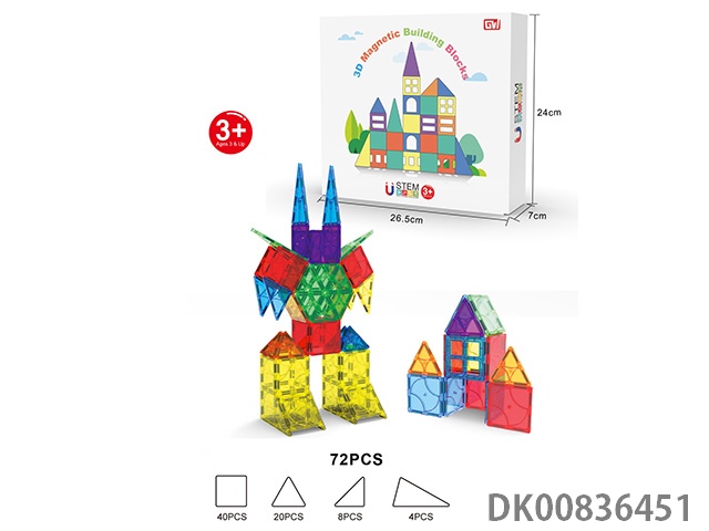 72 Pieces of 3d magnet color window building blocks