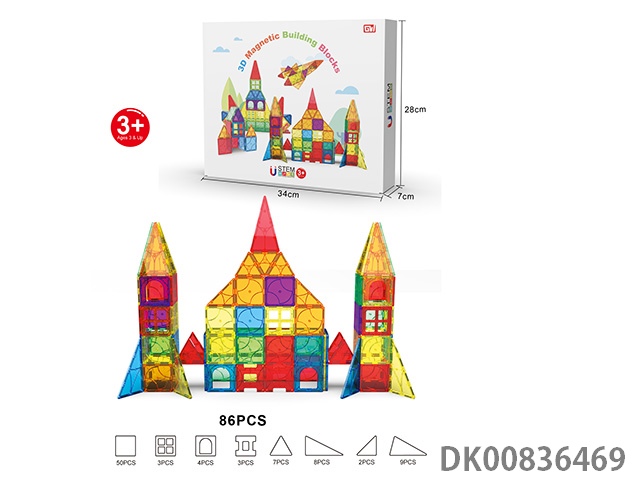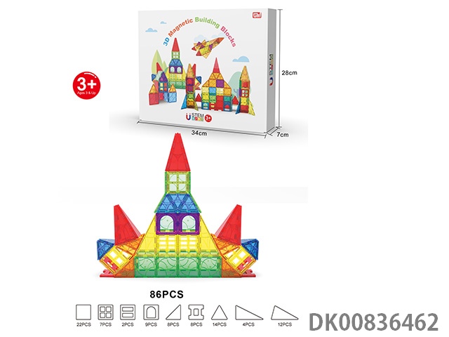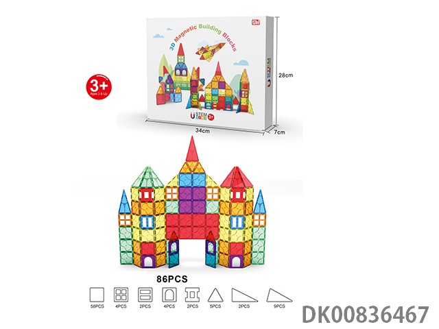 86 Pieces of 3d magnet color window building blocks