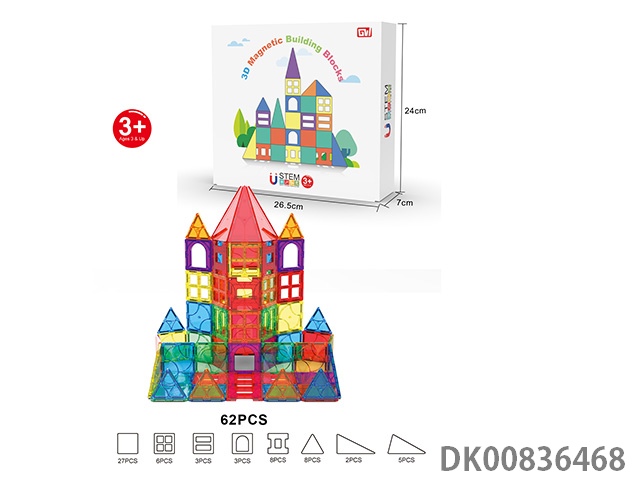 62 Pieces of 3d magnet color window building blocks