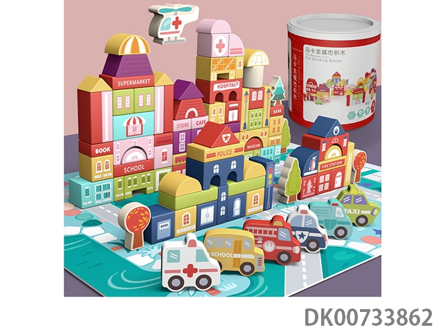 100 Pieces of street view building blocks (barrels) and 24 pieces of character relationship blocks and 20 pieces of floor boards