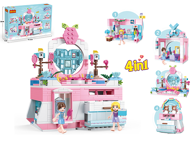 Puzzle building blocks / small particles \/ new girl series creative 4 in 1 dressing table 653pcs