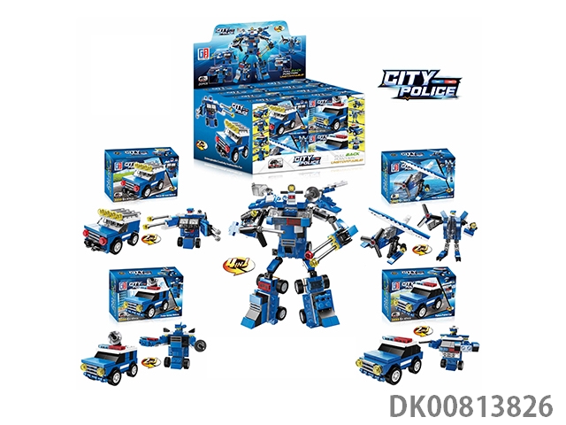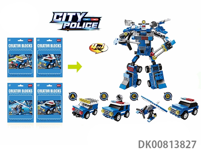 Yizhi city building block 4 in 1 return force ejection deformation police robot series (47-56pcs) 20pcs/box