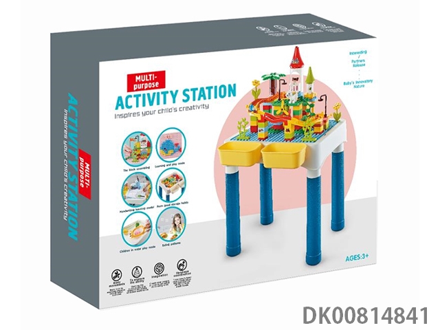 Building block study desk (2 storage boxes and 4 heightening and 1 large board, 60 granule building block bag and 200 mushroom nails)