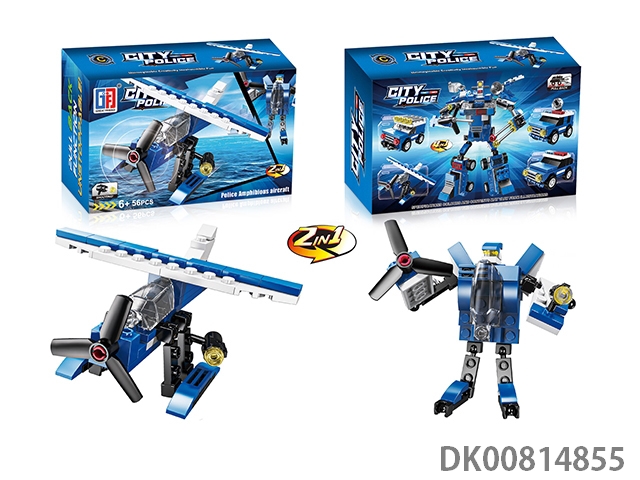 Yizhi city police building block catapult deformation two aquatic and land police aircraft (56pcs) can be mixed with four models