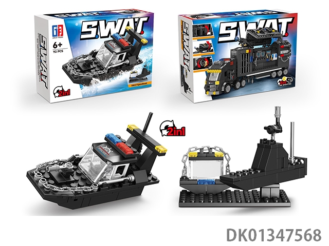 Puzzle city building blocks 2 transformed into special police clippers (92pcs) eight mixed models