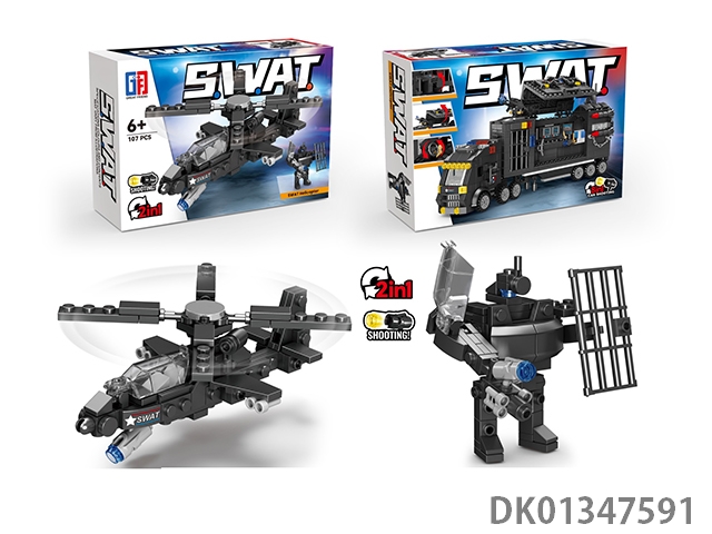 Puzzle city special police building blocks 2 transformed launch special police apache (107pcs) eight mixed models