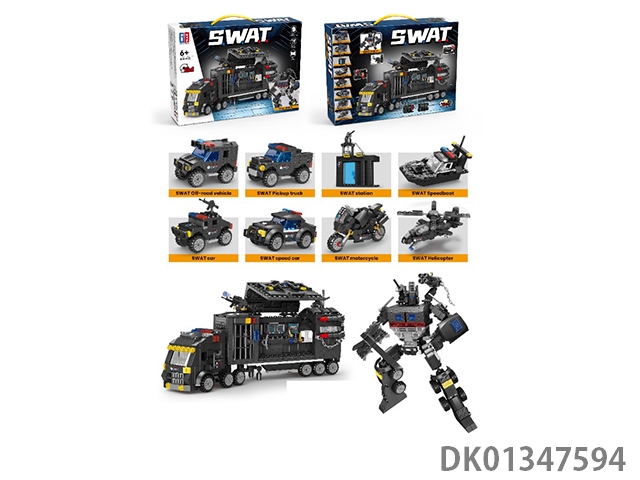 Puzzle city building blocks 2 transform special police series 8-in-1 transform special police transport container base truck king kong (826cs)