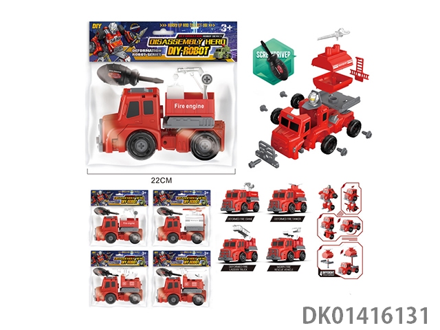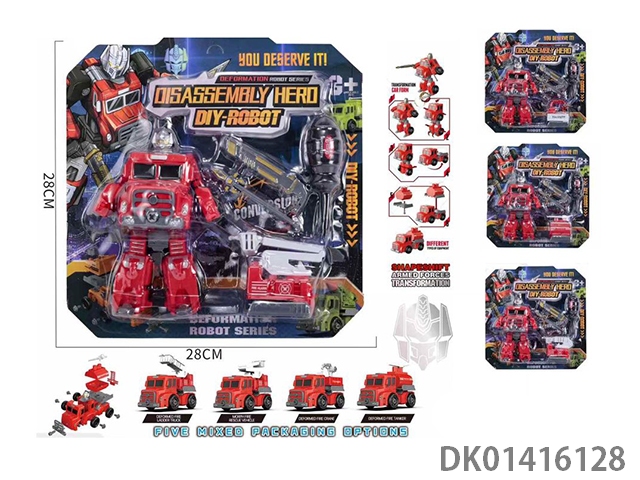 Four types of hybrid transformation vehicles, disassembly and assembly of fire robots, boys playing house toys