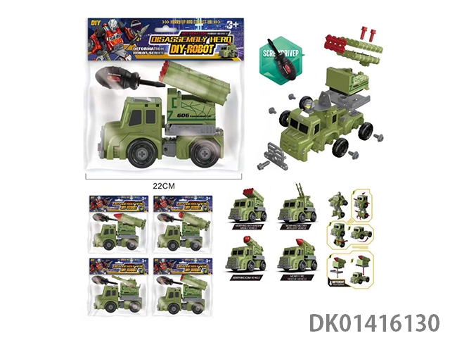 Four hybrid transformation vehicles for dismantling and assembling military robots, boys play with toys at home