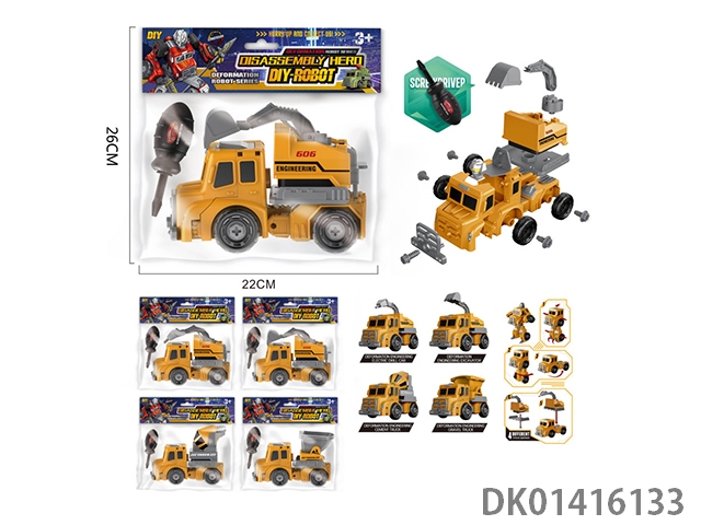 Four hybrid transformation vehicle disassembly and assembly engineering robots, boys play house toys