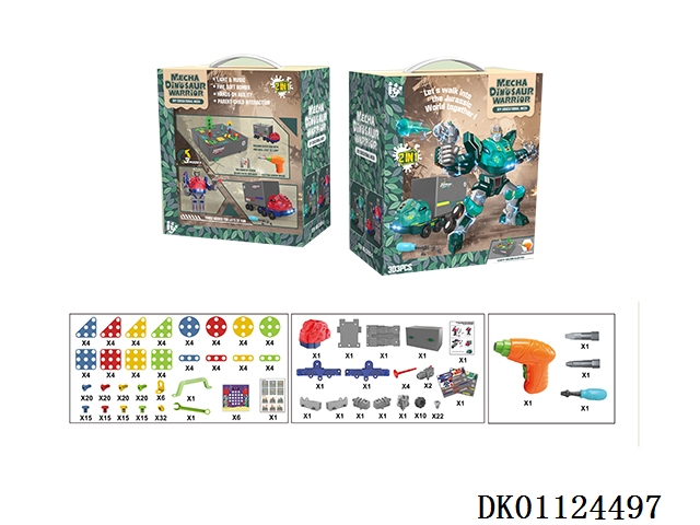 Disassembly and assembly of dinosaur sound dinosaur deformation car with light and double-sided screw storage set (303pcs) with electric screwdriver