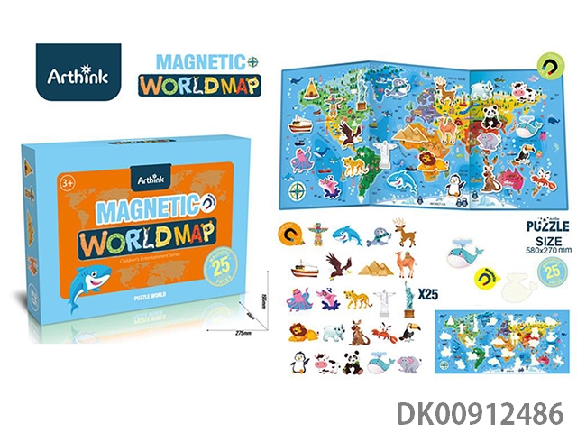 Puzzle world map magnetic attraction
