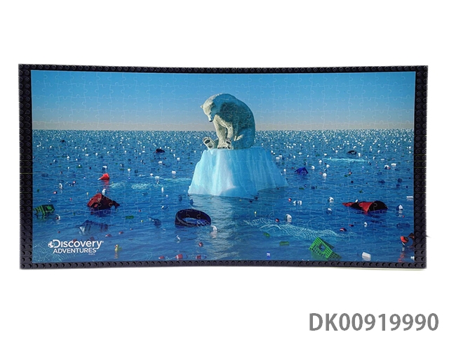 450Pcs building block puzzle (global warming, polar bear, floating on a piece of ice in the center of a huge marine garbage area) genuine license of the discovery channel