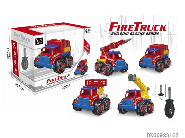 (Middle) disassembly and assembly of diy large fire truck, with a screwdriver inside