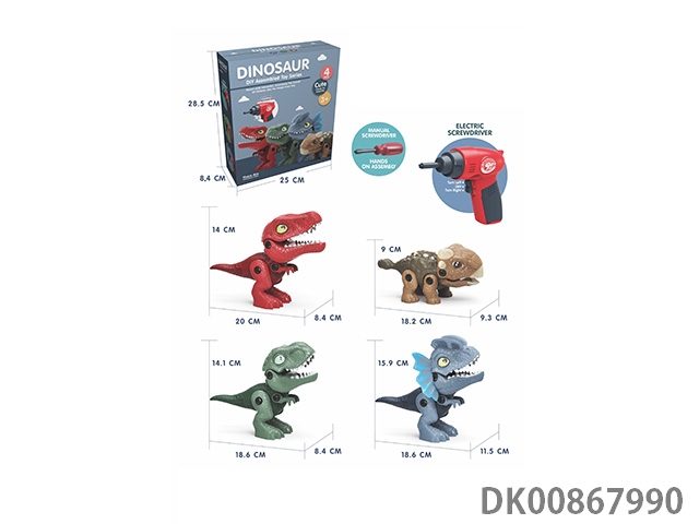 Disassembly and assembly of dinosaur (4 mixed packages with electric screwdriver)