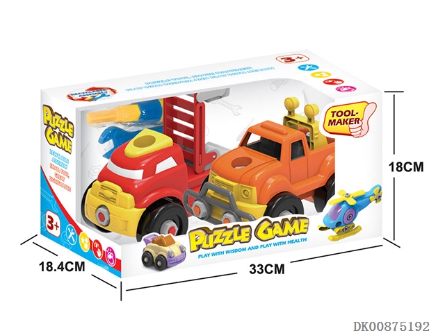 Cartoon disassembly and assembly of 2 off-road vehicles and ladder vehicles