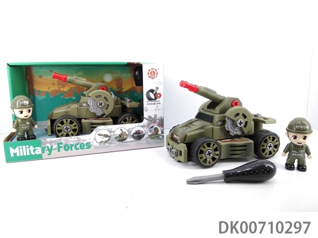 Glide function diy self-contained building block military series anti-aircraft artillery vehicle (military green) (with characters)