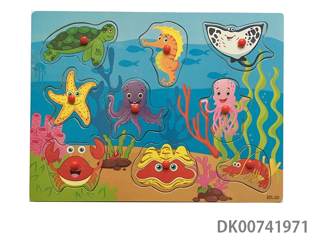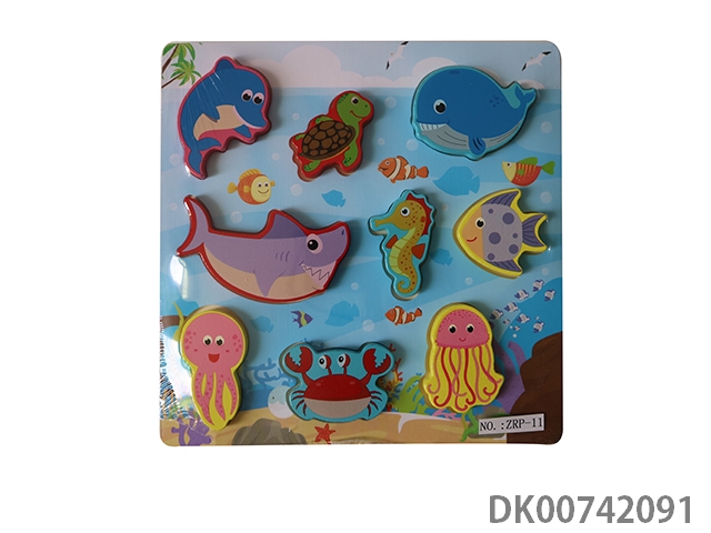 Wooden jigsaw puzzle of marine animal grasping board