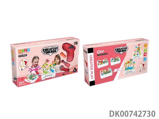 Diy versatile building block assembly tool box and electric drill (214pcs)