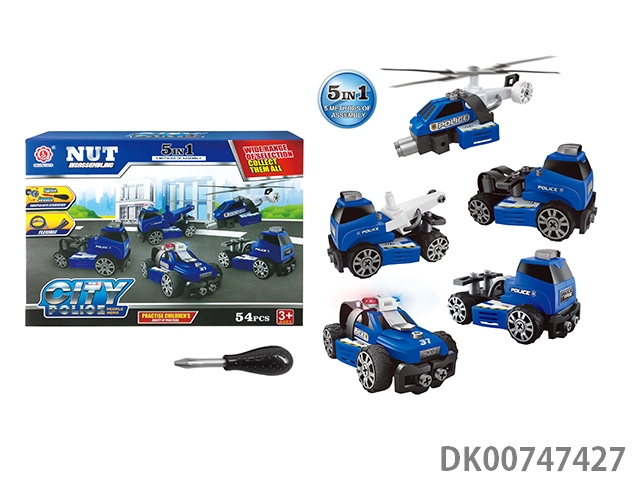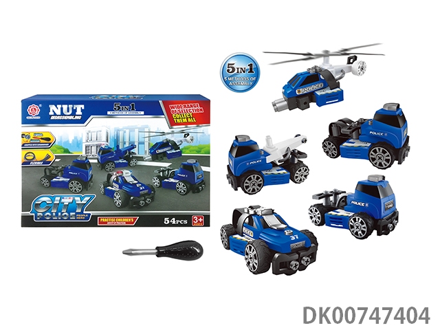 Sliding function diy self-contained building block city police suit with light music alarm light 5in1