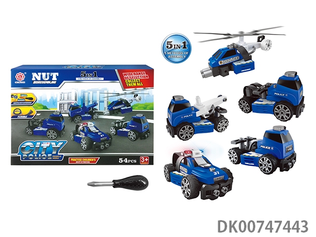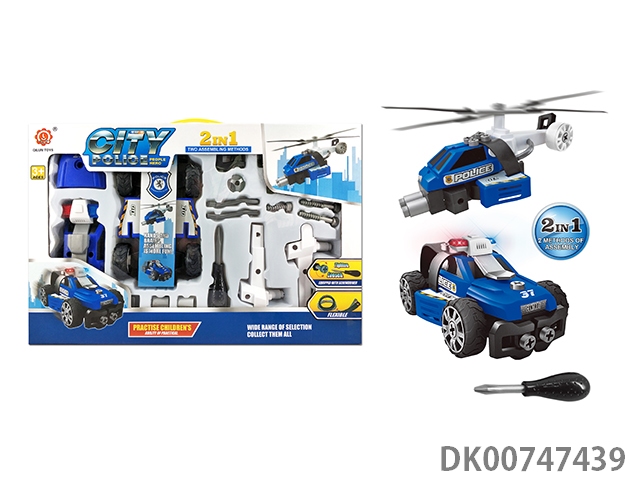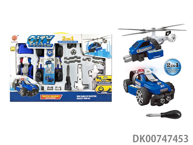 Sliding function diy self-contained building block city police suit with light and music alarm light