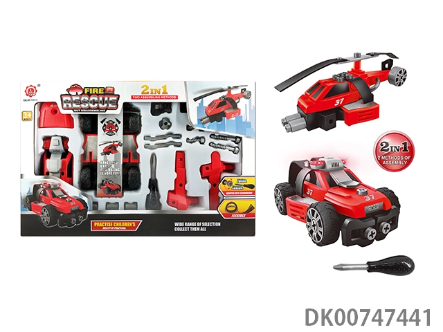 Inertia function diy self-contained building block fire rescue kit with light and music alarm lamp