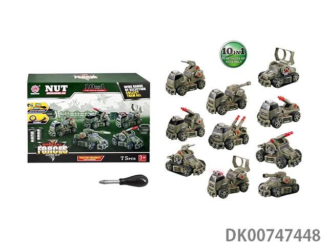 Inertial function diy self loading building block military anti-aircraft gun transport vehicle (without person)
