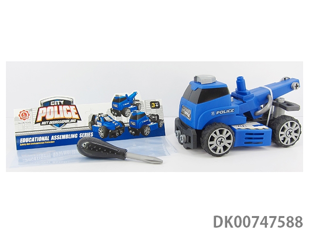 Diy self loading building block city police oil pipe truck with inertial function