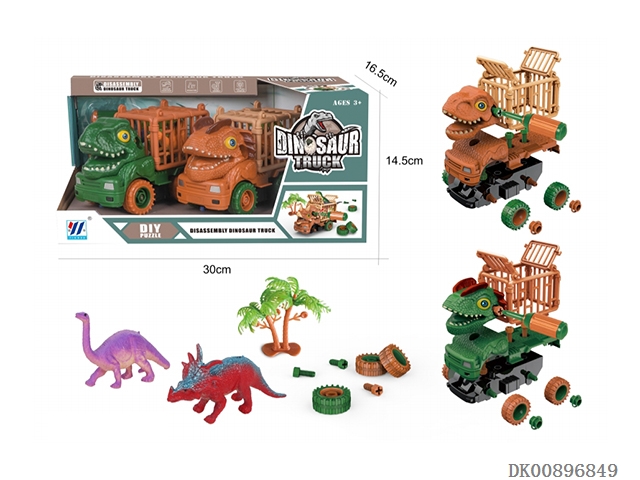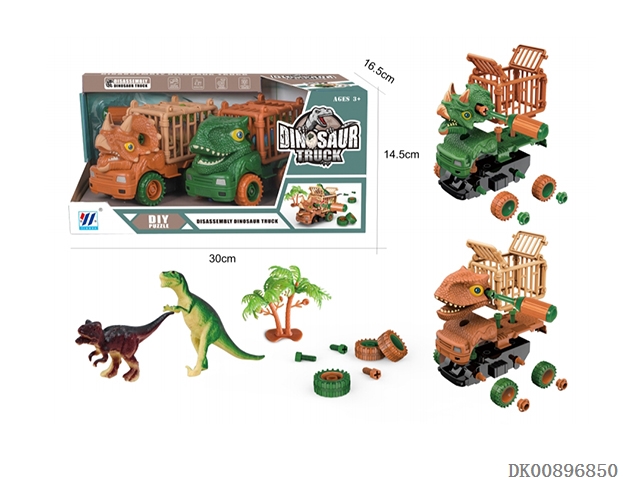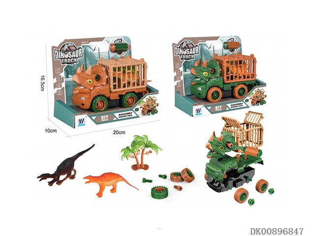 Two in one diy inertia disassembly dinosaur transport vehicle (2-color mixed loading)