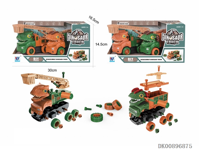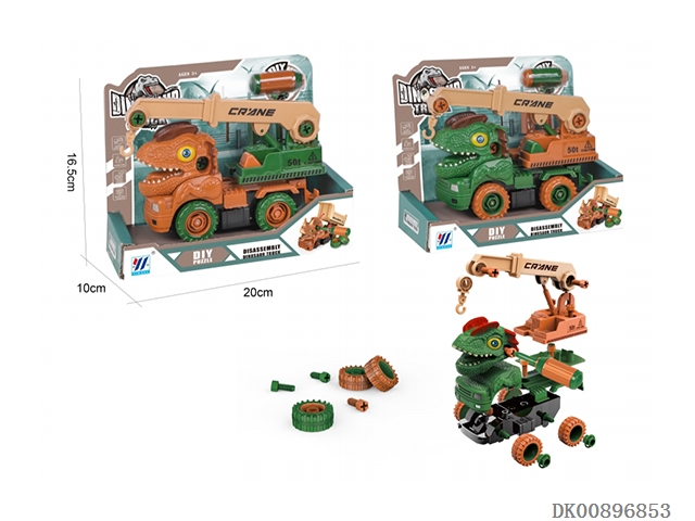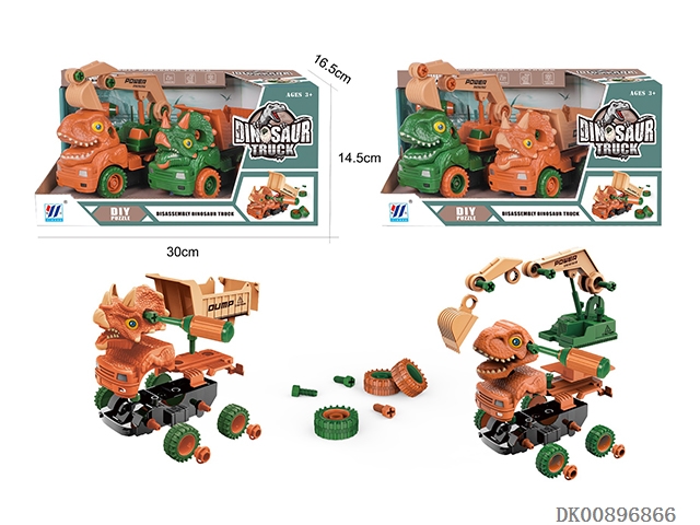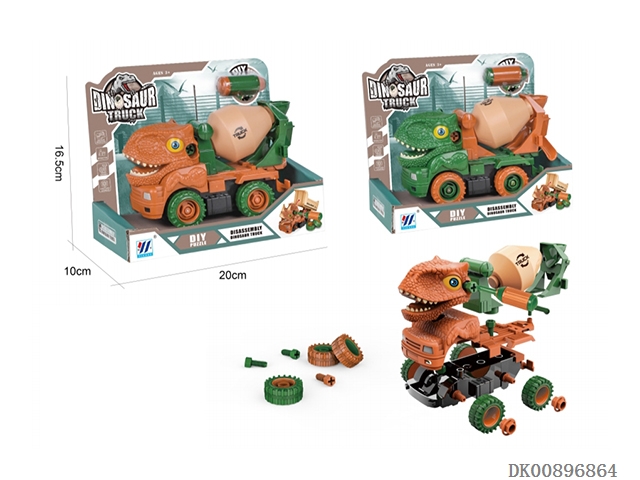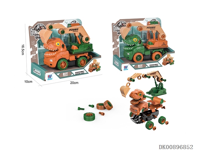 Two in one diy inertial disassembly dinosaur engineering vehicle (2-color mixed loading)