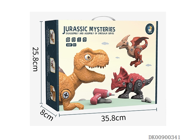 Puzzle diy screw assembly and disassembly simulation building block model dinosaur science and education suit (3 pieces)