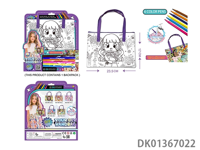 Flowers and plants graffiti can be washed in water, children’s small shoulder bag zipper style (six color pen), repeatedly used