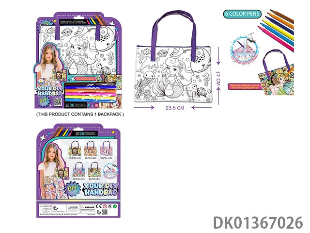 Mermaid graffiti water washable children’s small shoulder bag zipper (six color pen) reusable