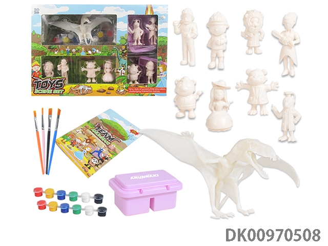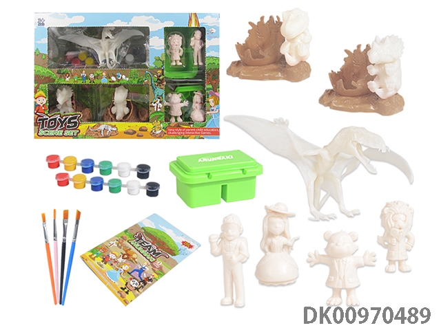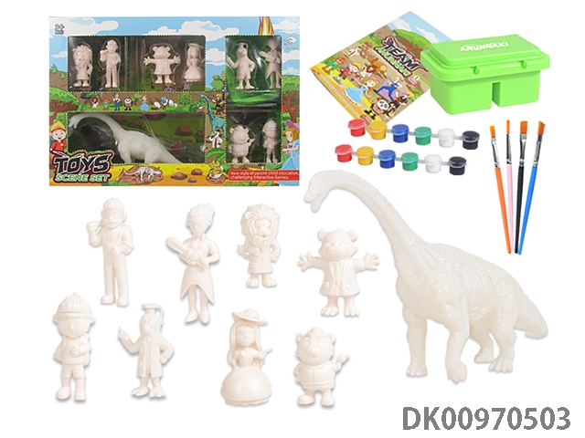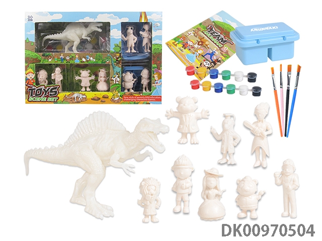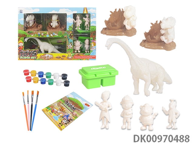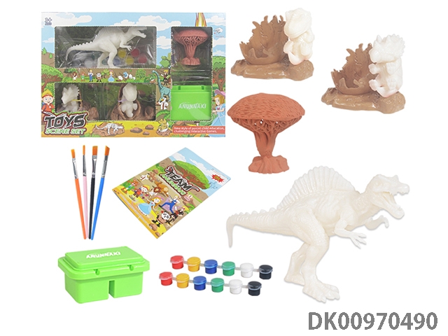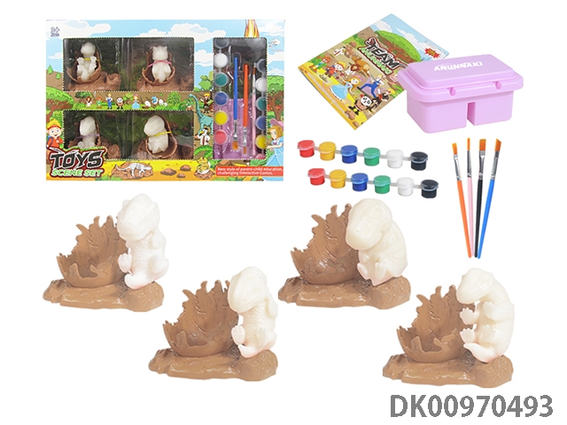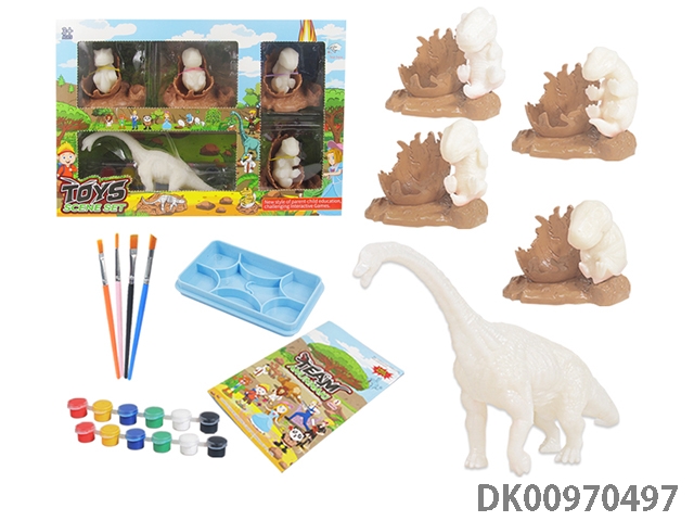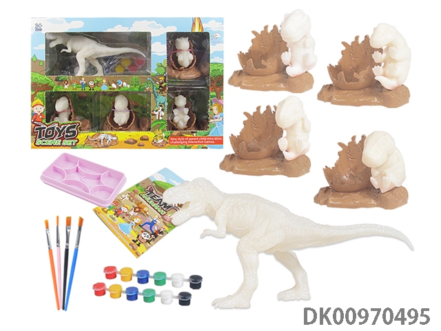 Jurassic world 3: rule - painted 6 sets of solid baby dinosaur white model, graffiti egg nest base and tree stone set, and 8 sets of colored solid doll models with 60 pieces