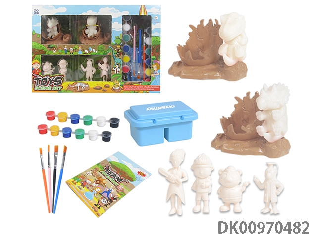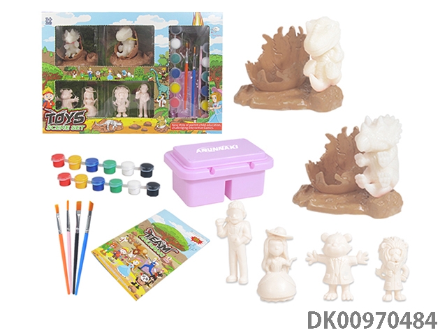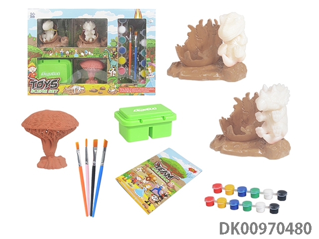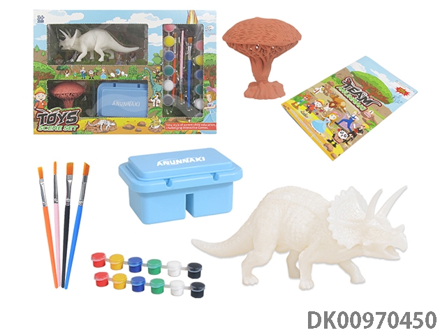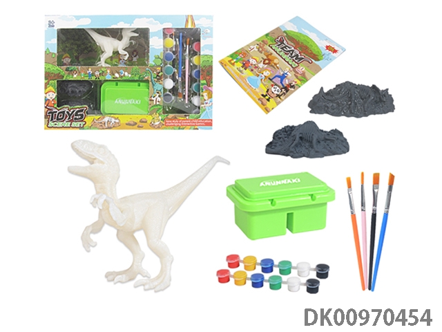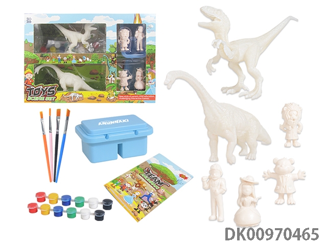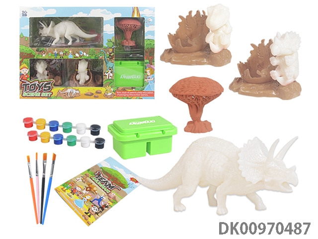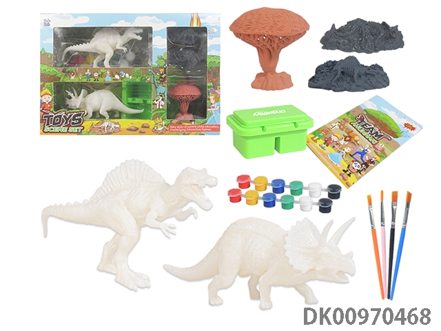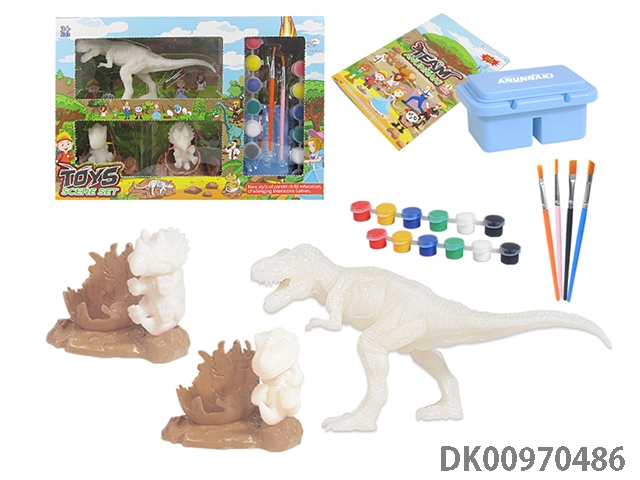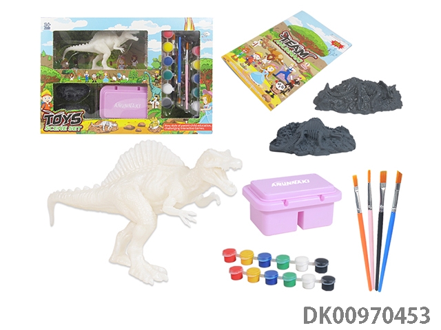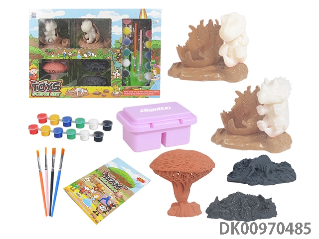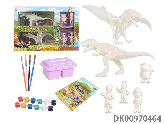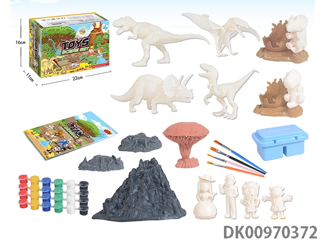 Jurassic world 3: rule diy painted graffiti 4 7-inch dinosaurs and 2 sets of painted dinosaur babies with egg nest base and volcano, 4 dolls and 1 tree and 2 fossils and game mat set, 49 pieces